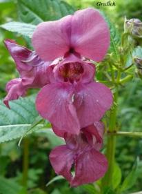 ![]() Třída: Rosopsida, vyšší dvouděložné rostliny Řád: Ericales, vřesovcotvaré Čeleď: Balsaminaceae, netýkavkovité Rod: Impatiens, Netýkavka Druh: Impatiens glandulifera, Netýkavka žláznatá Další názvy: Impatiens roylei (Walpers); netýkavka Royleova Rozšíření: zavlečená invazní rostlina původní v Indii a západní Himaláji, v 19. století vysazována jako okrasná rostlina, dnes zplanělá - břehy, lužní lesy, vlhká rumiště Délka života: jednoletá bylina Doba květu: červenec až říjen Velikost: 0,5 až 3 m Popis: statná bylina s dutou lodyhou, vejčitě kopinaté, pilovité listy jsou často až 30 cm dlouhé a 8 cm široké, vyrůstají střídavě, horní listy jsou často v přeslenu. Vonné, vínově červené ( zřídka bílé) zygomorfní květy jsou 2 až 4 cm dlouhé se zakřivenou ostruhou a skládají dlouze stopkaté, řídké hroznovité květenství ( 2 až 15 květů v květenství). Plodem je tobolka s 5 až 10 semeny. Zajímavosti: Tobolky ve zralosti pukají a semena jsou vystřelována na značnou vzdálenost a tím přispívají k invaznímu šíření rostliny. |